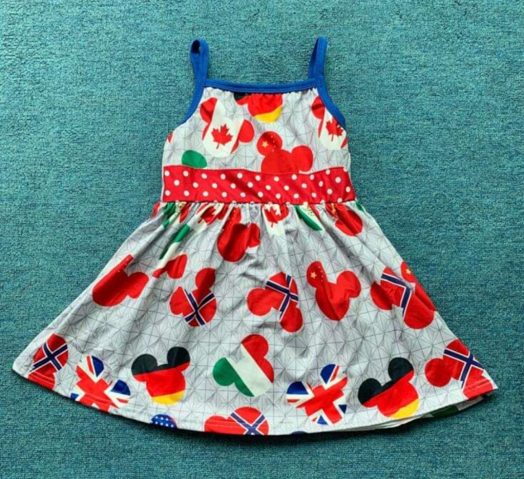 World Showcase Dress is a spaghetti strap dress made of milk silk. It runs true to size.