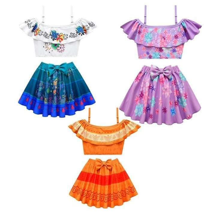 Family Madrigal two piece swimsuits are made of soft and stretchy swim material, no swim liner included. Skirt has attached shorts beneath, and the length is long, knee length on most, or longer for petite. Adjustable swimsuit straps on top, with peekaboo shoulders. These run true to size.