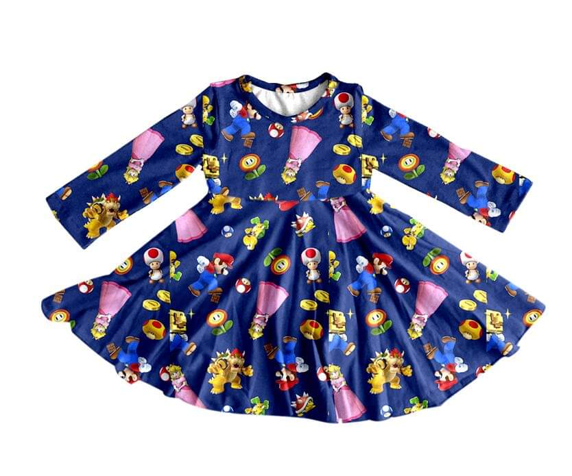 Video game dress is made of soft milk silk and matches Mario shirt! Runs true to size.