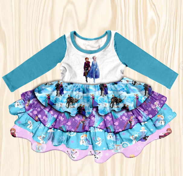 Snow Sisters Ruffle Dress is made of milk silk, runs true to size.