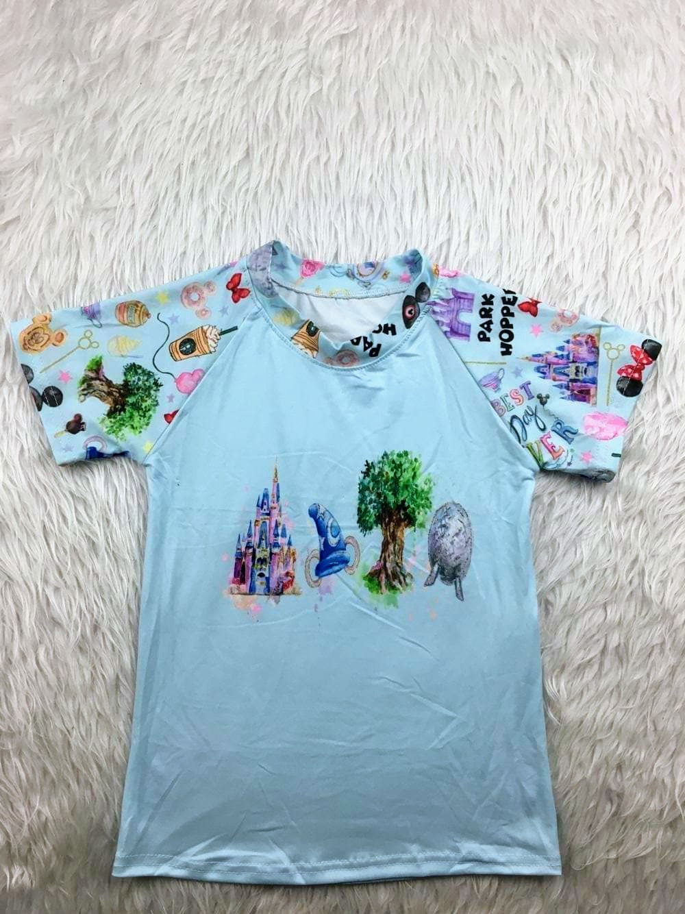 Park Hopper shirt is made of milk silk, runs slim, suggest sizing up for boys.